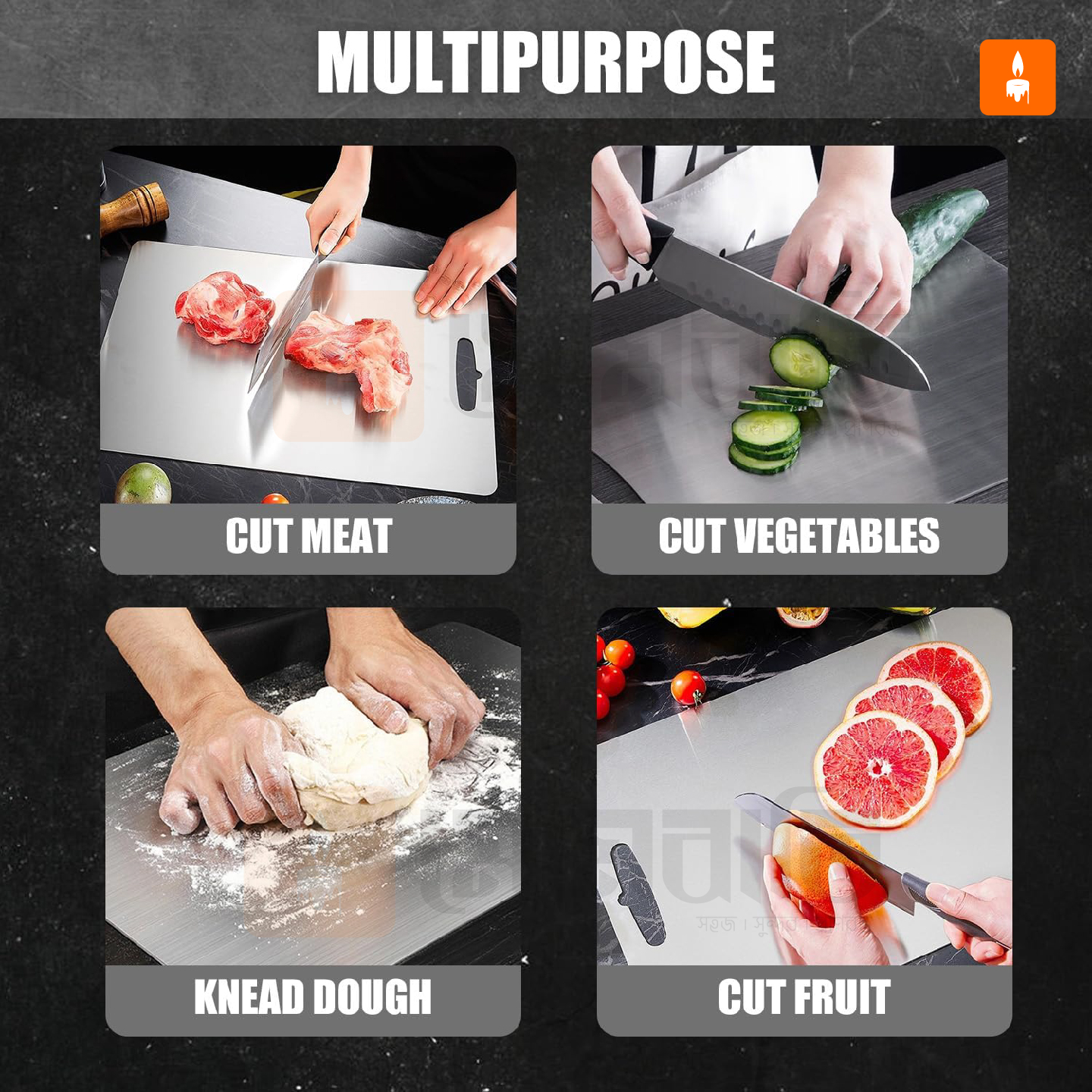 এই স্টেইনলেস স্টিল চপিং বোর্ড আপনার রান্নাঘরের প্রতিদিনের বিশ্বস্ত পার্টনার হয়ে উঠবে। স্টাইল, স্বাস্থ্যবিধি আর স্থায়িত্ব—সব এক বোর্ডেই।