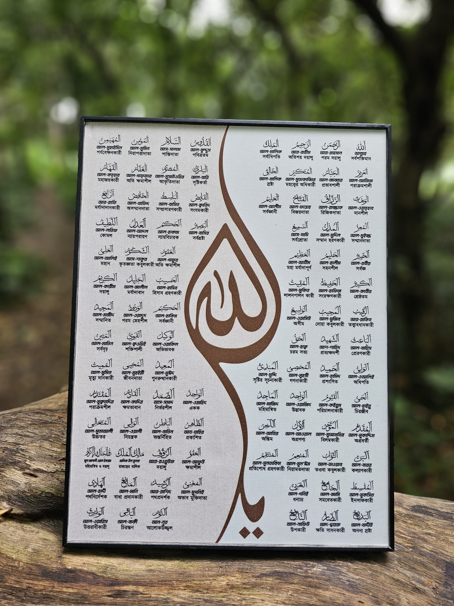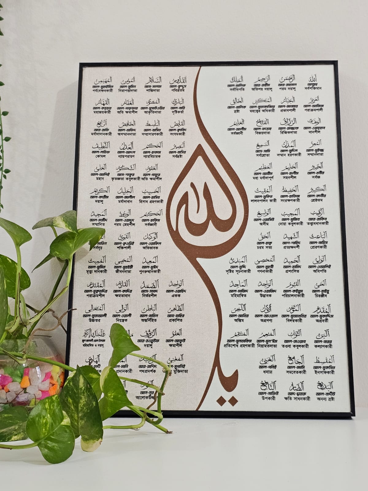 আল্লাহর ৯৯টি নাম একসাথে প্রিন্টেড।