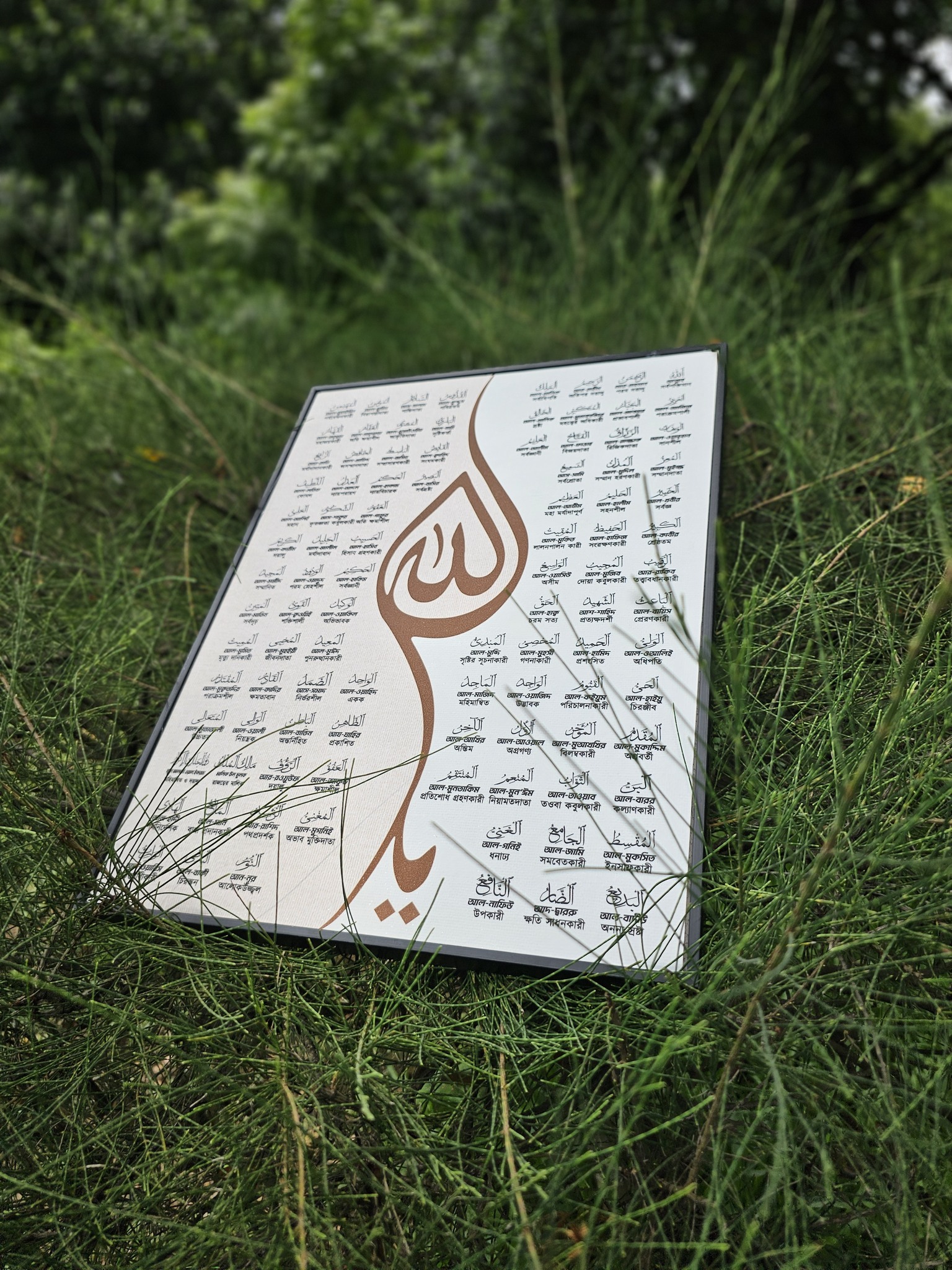 আল্লাহর ৯৯টি নাম একসাথে প্রিন্টেড।